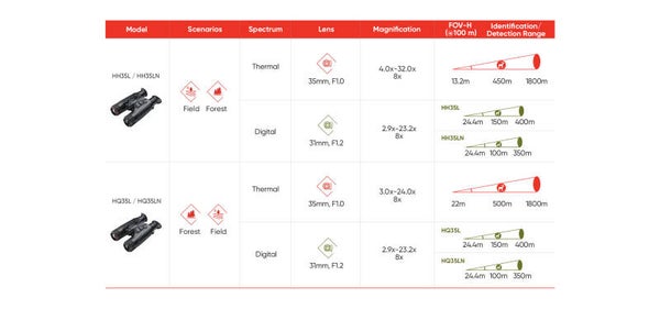 De HE25L is gebouwd rond een robuust en lichtgewicht chassis van magnesiumlegering, de HE25L combineert een Sub 35mK NETD, 256px thermische sensor met een 4K digitaal optisch kanaal, plus ingebouwd infrarood nachtzicht en een 1000m laserafstandsmeter om een alles-in-één apparaat te leveren dat veel dingen doet die een conventionele analoge optiek niet kan: